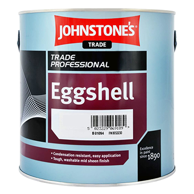 Johnstone's Trade Eggshell is an eggshell finish with a high VOC content. A washable oil-based product for interior use that can be applied with a brush or roller. Recoatable after 16-24 hours.