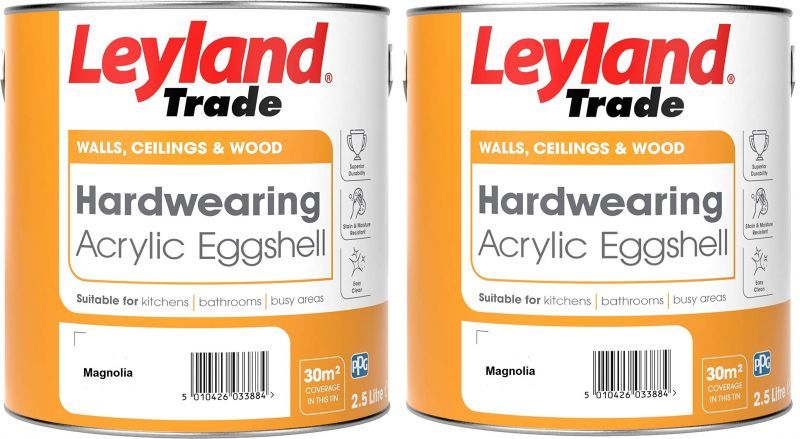 10 times tougher than conventional matt and silk Perfect for kitchens and bathrooms Low odour Quick drying Suitable for walls, ceilings and interior wood Leyland Acrylic Eggshell is a quick drying, low odour, eggshell finish, manufactured from high-quality pigments and tough acrylic resin. Suitable for wall and ceiling surfaces in most interior situations.
