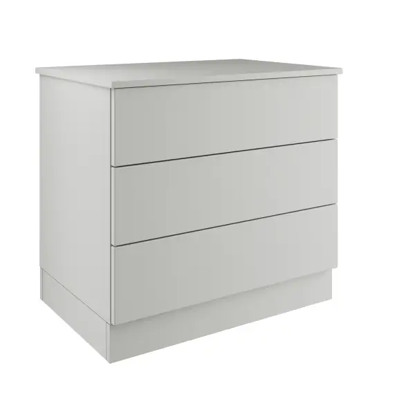 The classic / shaker light grey 3-drawer double chest comes with MDF slab style drawer fronts drawer fronts in a standard matt finish, light grey chest and soft close drawer runners.