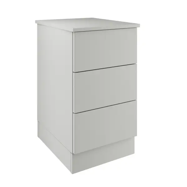 The slab light grey 3-drawer single chest comes with MFC slab frontals drawer fronts in a standard matt finish, light grey chest and soft close drawer runners.