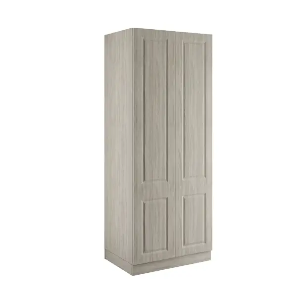 A urban oak double wardrobe with single rail & shelves, that comes with MDF classic square frontals in a luxurious super matt finish, a urban oak cabinet and soft close hinges. The flatpack quick build cabinet is delivered to a room of your choice. The modular furniture can be used for freestanding purposes or joined together to achieve a built-in look. Everything is manufactured to the highest standard in the UK using FSC material with a 10 year manufacturer’s guarantee. Please note, handles sold separately.
