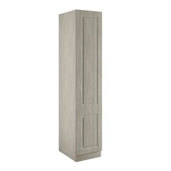 A urban oak single wardrobe with shelves, that comes with MDF classic square frontals in a luxurious super matt finish, a urban oak cabinet and soft close hinges. The flatpack quick build cabinet is delivered to a room of your choice. The modular furniture can be used for freestanding purposes or joined together to achieve a built-in look. Everything is manufactured to the highest standard in the UK using FSC material with a 10 year manufacturer’s guarantee. Please note, handles sold separately.