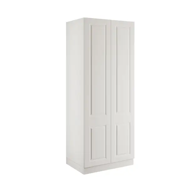 A white double wardrobe with single rail & shelves, that comes with MDF classic square frontals in a luxurious super matt finish, a white cabinet and soft close hinges. The flatpack quick build cabinet is delivered to a room of your choice. The modular furniture can be used for freestanding purposes or joined together to achieve a built-in look. Everything is manufactured to the highest standard in the UK using FSC material with a 10 year manufacturer’s guarantee. Please note, handles sold separately.