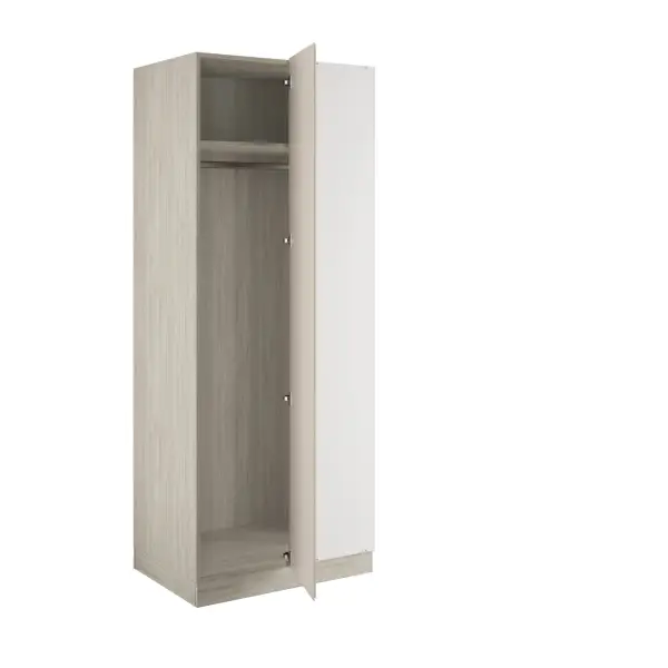 A cashmere blind corner wardrobe, that comes with in a luxurious super matt finish, a urban oak cabinet and soft close hinges. The flatpack quick build cabinet is delivered to a room of your choice. The modular furniture can be used for freestanding purposes or joined together to achieve a built-in look. Everything is manufactured to the highest standard in the UK using FSC material with a 10 year manufacturer’s guarantee. Please note, handles sold separately.