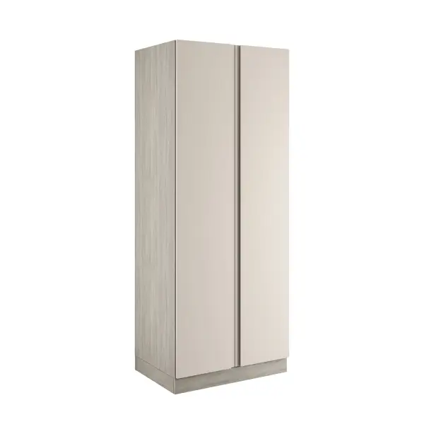 A cashmere double wardrobe with shelves, that comes with in a luxurious super matt finish, a urban oak cabinet and soft close hinges. The flatpack quick build cabinet is delivered to a room of your choice. The modular furniture can be used for freestanding purposes or joined together to achieve a built-in look. Everything is manufactured to the highest standard in the UK using FSC material with a 10 year manufacturer’s guarantee. Please note, handles sold separately.