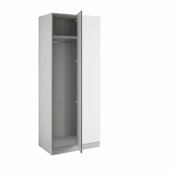 A light grey blind corner wardrobe, that comes with in a luxurious super matt finish, a light grey cabinet and soft close hinges. The flatpack quick build cabinet is delivered to a room of your choice. The modular furniture can be used for freestanding purposes or joined together to achieve a built-in look. Everything is manufactured to the highest standard in the UK using FSC material with a 10 year manufacturer’s guarantee. Please note, handles sold separately.