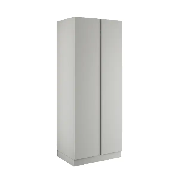 A light grey double wardrobe with single rail, that comes with in a luxurious super matt finish, a light grey cabinet and soft close hinges. The flatpack quick build cabinet is delivered to a room of your choice. The modular furniture can be used for freestanding purposes or joined together to achieve a built-in look. Everything is manufactured to the highest standard in the UK using FSC material with a 10 year manufacturer’s guarantee. Please note, handles sold separately.