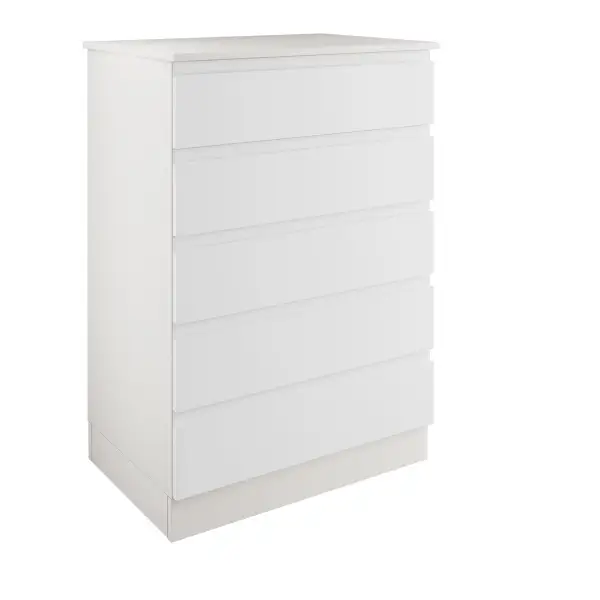 The white 5-drawer tallboy chest comes with MDF J-Pull frontals drawer fronts in a luxurious super matt finish, white chest and soft close drawer runners. The flatpack quick build chest is delivered to a room of your choice. The bedroom furniture can be used for freestanding purposes or joined together to achieve a built-in look. Everything is manufactured to the highest standard in the UK using FSC material with a 10 year manufacturer guarantee. Please note, handles sold separately.