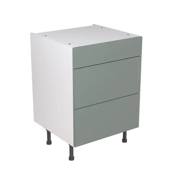 Kitchen Kit Flatpack Slab Ultra Matt Sage Green 600 Base Unit 3 Drawer - FKKF1106