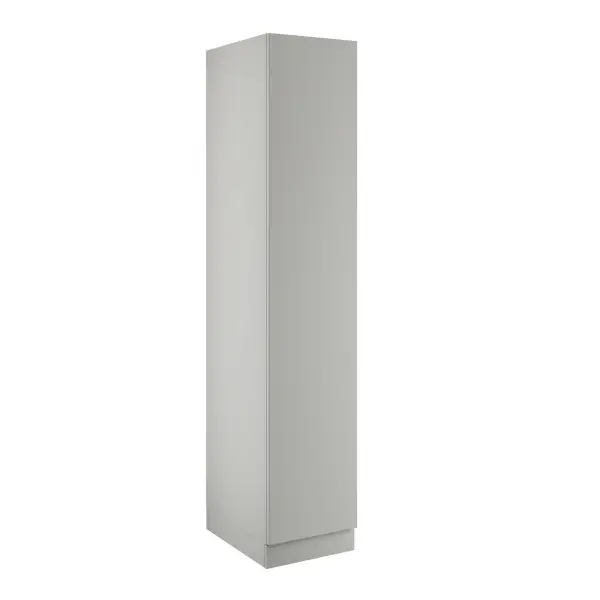 A light grey single wardrobe with double rail, that comes with MFC slab frontals in a standard matt finish, a light grey cabinet and soft close hinges. The flatpack quick build cabinet is delivered to a room of your choice. The modular furniture can be used for freestanding purposes or joined together to achieve a built-in look. Everything is manufactured to the highest standard in the UK using FSC material with a 10 year manufacturer’s guarantee. Please note, handles sold separately.
