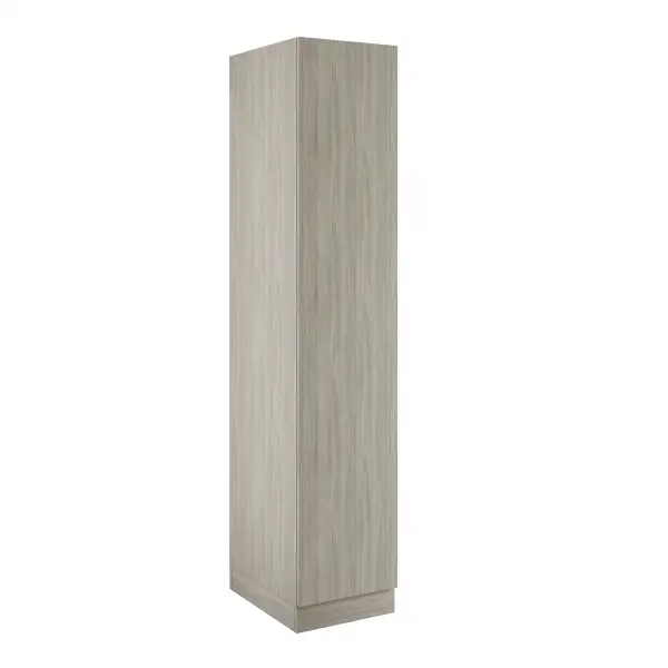 A urban oak single wardrobe with single rail, that comes with MFC slab frontals in a standard matt finish, a urban oak cabinet and soft close hinges. The flatpack quick build cabinet is delivered to a room of your choice. The modular furniture can be used for freestanding purposes or joined together to achieve a built-in look. Everything is manufactured to the highest standard in the UK using FSC material with a 10 year manufacturer’s guarantee. Please note, handles sold separately.