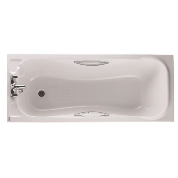 Showcasing the Twyford Signature Bath, 1700x700, 2 Taphole, Inc Grips, Headrest And Twin Soap Recesses, Patterned Standing Area