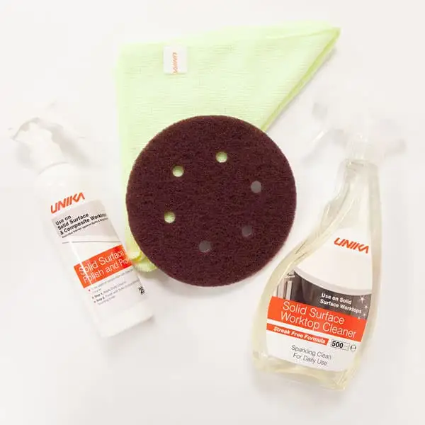 Designed to maintain and rejuvenate your solid surface worktops, the Unika Solid Surface Worktop Care & Maintenance Kit includes essential products to keep your surfaces looking pristine.