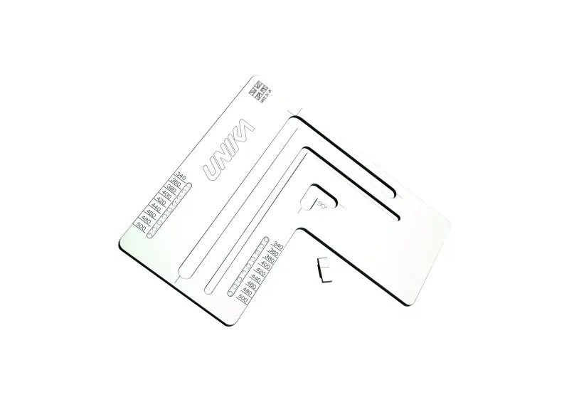 Unika's SL-UN series comprises precision-engineered worktop jigs crafted from 12mm hardwearing compact laminate, renowned for their durability and accuracy. Designed to facilitate professional-grade cuts in composite, laminate, compact laminate, and solid wood worktops, these jigs are essential tools for achieving seamless joints and precise sink recesses.