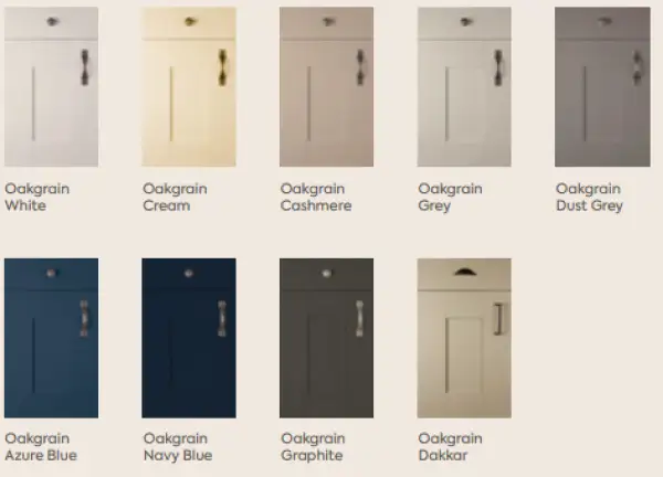 Wilton Shaker Style Kitchen Door and Drawer Fronts Oakgrain Finish in CashmereFrom: £10.50 Inc. VAT(£8.75 Ex. VAT)